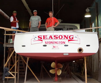 To see an album of photos chronicling the building of Seasong, go to www.buxtonboats.com.