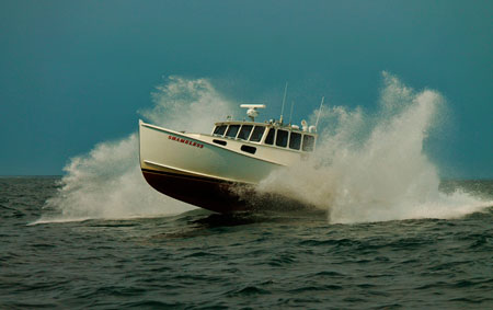 FV Shameless taking in a few swells on Penobscot Bay. As the lobster season rolls back so begins the speculation on the coming year. Lobster harvest numbers continue to increase with growing pains that include low profit margins and high uncertainty about the future. With early soft shell gluts still in the spotlight, invasive green crabs are pushing their way to the front pages. Joel Woods photo