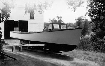 Rich & Grindle built this 32' open boat with a then modern windshield for Carroll Sargent Tyson Jr., a Northeast Harbor summer resident, in 1948. Courtesy The Southwest Harbor Public Library Digital Reference Archive