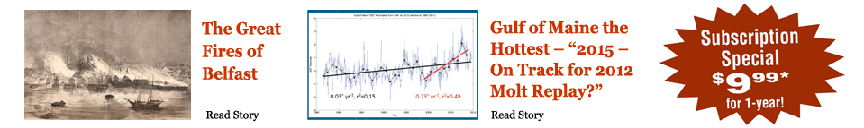 View to the Atlantic from the top of Fort William at Pemaquid, Maine. Location of one of the earliest settlements in America (1607). The round two-story stone Fort William was built over a large granite outcrop, Fort Rock, to prevent native Americans from using the outcrop for cover during attacks. Pemaquid was one of the largest fur trading posts in the region in the early 1600s. George Waymouth arrived from England in 1605 explored the region and traded “trifles” for furs with the natives. Fishermen’s Voice photo