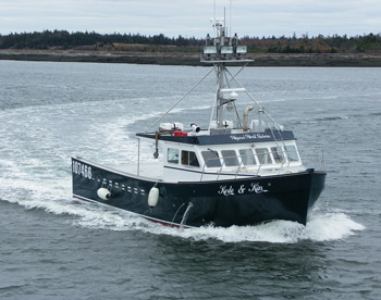 Knotty Habits, a Dixon Marine Group 50 X 27 X 6.5 boat fishes at Grand Manan. It has 5 live wells with a 120-crate capacity. It runs a 13.5 John Deere. Dixon Marine Group photo