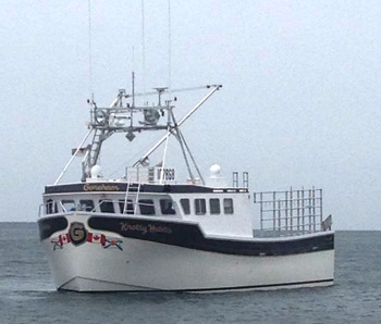 But not all Grand Manan fishermen have huge boats. Drouin said most of them fish under the same conditions as downeast Maine fishermen. When Drouin fished off Machias Seal Island all year from 1990 to 2002, he started with a 36-foot fiberglass Novi. Then in 1994 he switched to a Jonesport Wayne Beal 36. In 2002, he bought his first Wesmac, a 42-footer. He then moved up to a Wesmac 46 and is presently having another Wesmac 46 built three feet wider than his previous one.