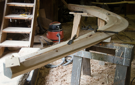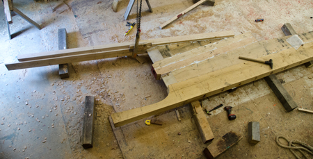 The assembled stern frame. Curved parts are cut using patterns drawn from lofting and