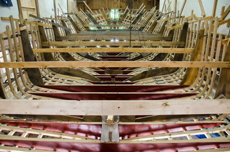 ribbands and ribs in place before planking begins.