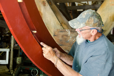 Peter Kass has had a life-long interest in wooden boats. Kass still builds one boat at a time. The building methods might be called improved traditional. Some of his crew have been with him for decades.