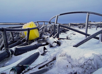 The pens and nets were encased in ice for nearly a month. The sites were so severely damaged, large holes were visible in the netting and many pens collapsed from the weight of the ice.