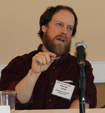 Dwayne Shaw, Downeast Salmon Federation speaking at the Alewives meeting at the Maine Fishermen’s Forum in March. Restoring alewife population levels in Maine rivers is an essential component in the restoration of groundfish populations in the Gulf of Maine, once among a handful of the richest ground fish resources on earth.