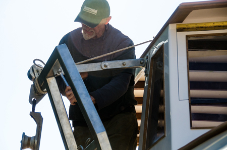 Most of the stainless hardware is custom made at the shop. Sam Jones does the final tightening down.