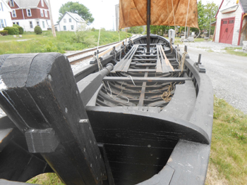 Since her eventful trip, The Light Horseman was used in a re-enactment in Pemaquid. She now sits on stands in front of Captain Jim’s museum in Rockland, her new, permanent home. To get her there, Captain Jim, his wife and crew rowed her from the Apprenticeshop to the museum, only a short distance. But it was a hard row. The oars were terribly heavy and, according to Captain Jim, she “leaked like a sieve. We were bailing the whole time.”