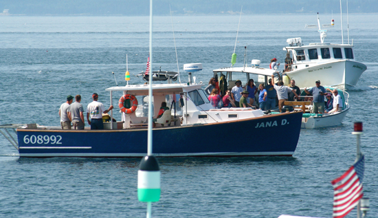 One of many gatherings at the Bass Harbor races. Weather led to the cancellation of the