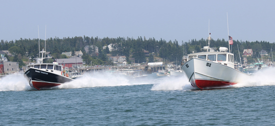Family Tradition with 51 in the foreground and lead. Both Stonington boats at Stonington, July 12, 2015.