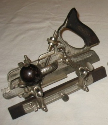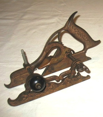 The plane in photo 2, is strictly a plow and rabbet plane and is one of the most desirable planes for the collector. It is known as the type 1 #50 manufactured from 1874-1875 and patented by Charles Miller. Three variations of this plane were offered. One in cast iron with japanned finish, another in cast iron with copper wash and a third that was solid bronze. These planes have become one of the highlights in a tool collection.