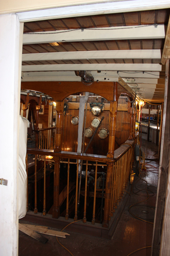 The gallery over the steam engine where passengers can view the engine in operation. This photo was taken during the current restoration at Mystic Seaport. Mystic Seaport Museum photo