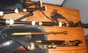 Michael Dow began by copying museum artifacts, the type used 200 to 250 years ago. However, Dow says that pipes he made then and now bear little resemblance to those early sets. Dow says that his innovations resulted from his careful study of those early sets and that his modifications are designed to minimize problems pipers may encounter. Most of Michael Dow’s Scottish smallpipes are sold domestically. These are primarily in the key of A.