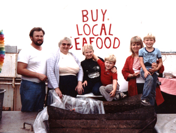 The Bendiksen family poses during the 1985 Blessing of the Fleet. Today, grown-up sons Tor and Hans work in the family shoreside business.