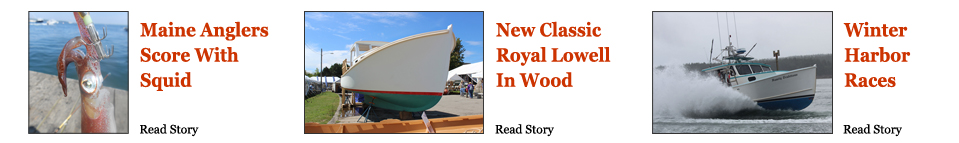 It looked like winter in Winter Harbor on race day August 13, 2016, despite warm rain and fog. Tom Clemons’ Motivation here at about 53MPH. Clemons runs a C18 CAT 1000HP diesel in this new Northern Bay 36 he and a couple of friends finished last year. Motivation was neck and neck up the course with Glen Crawford’s V12 diesel Wild Wild West before Crawford broke away in this finish line photo. Wild Wild West’s wake is visible in the background far right, one of three close races for Motivation. See more photos here. Fishermen’s Voice photo