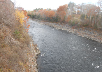 The ledges that presented such a terrible problem for men paddling and poling bateaux in October of 1775 have since been removed by blasting. But when Arnold’s men passed, the ledges at the beginning of the gorge formed what lumbermen would later term, “The Barn Door.”