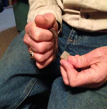 Proper way to hold the steel and flint when preparing to strike the two together. Tom Seymour photo