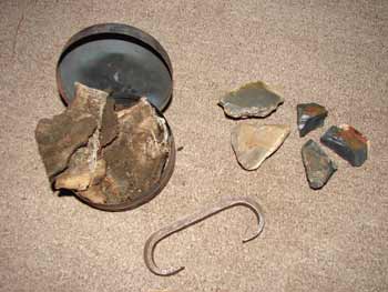 Nodes of yellow French flint was used as ballast and later in the flint and steel combination. Flint ballast from French ships dumped and today found along the beaches of Nova Scotia ranges from coarse yellow to fine gun flint black. 18th century flint lock rifles used a spring loaded steel hammer against a piece of flint to ignite gunpowder. Tom Seymour photo