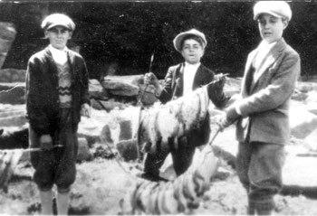 Left to right, Julian Smith, John Richardson, Freeman Grindle. Spearing flounder up inside at Otter Creek 1930s. Photo courtesy the Final Barn Sale.