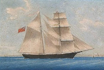 Painting of the Mary Celeste as Amazon 1861 under sail and the British flag.