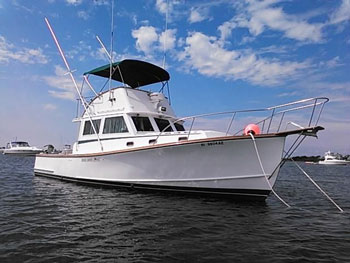 Raymond has his own sportfisherman on the Cape, “Downeaster,” which come to find out is one of my 34s. Started life as a lobsterboat he’d repowered with a single Caterpillar 3208TA. He’d added flybridge and striking pulpit for Tuna and Swordfish. Planned to add a small tower this coming season for even better visibility. Tuna were beginning to show up on the Japanese buy list, making a few of the Cape boys some serious money. Nothing to have a fish in your boat worth in excess of fifteen thousand dollars and Raymond said he’d boated eleven that past summer.