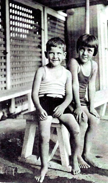1929 – John McMillan’s father, John, left, and his Aunt Margaret poolside in Louisiana, where the family’s interest and knowledge of survival at sea began. Photo courtesy McMillan family.
