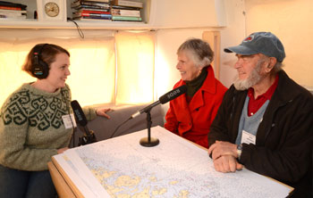 Galen Koch interviewing Diane Berlew and Bob Williams at the Forum. Koch will have the Airstream in several Maine coast towns for a few weeks each. Mark Haskell photo