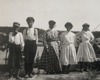 Harold McKinney and John Murphy, Jr (left to right), and three unidentified students from the Malaga Island school, circa 1910. Photo courtesy of Peter Roberts