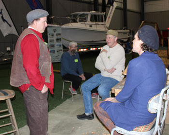 Burnham showed slides and video and discussed several boat building projects at his shipyard. They included the 65’ fishing schooner Thomas E. Lannon, Maine pinkies, the Schooner Ardelle and many others. Burnham, a master shipwright, is a 2012 National Heritage Fellow. He builds wooden boats in the traditional manner, outdoors and using traditional tools, at water’s edge on the same beach where his family has built boats for nearly 400 years.