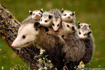 Opossums are our only North American marsupial. Opossum young are born prematurely and after that, finish their early development in a special pouch on the mother’s belly.