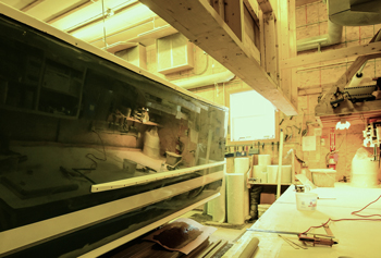 Timing is everything, when it comes to the evolution of SW Boatworks. Workman began gradually by finishing boats in the winter, when lobstering slowed down. In 1999, he and a friend, who happened to be looking for a space, began working together to finish boats; as they picked up more work, they eventually went their separate ways. Within two years, Workman expanded to two workshops and hired additional crew to meet the demands of the workflow. Workman began inquiring about the possibility of laying up hulls for his friend, Calvin Beal, whose family has been building lobster boats in Maine since the early 1900s. In 2007, Workman happened to be in the right place at the right time when Beal agreed to sell him his molds, making SW Boatworks the exclusive builder of the Calvin Beal. SW Boatworks began building hulls and tops for the Calvin Beal, which range in size from 30' to 50' and can be designed as lobster boats, sport fishing boats, and yachts. Despite the recession that started in 2008, the popularity of the Calvin Beal allowed SW Boatworks to stay in business, one boat at a time. “We were lucky that it all pulled together that way. It’s been well worth it…We’ve been really happy to carry on Calvin’s tradition. I couldn’t ask for a better person to do business with.”