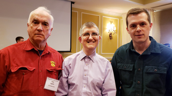 Machiasport fisherman Bobby Ingalls, Rep. Will Tuell (R-E. Machias) and Congressman Jared Golden (D-ME2) posed for a picture at the Fishermen’s Forum in Rockport last month. Tuell has sponsored a bill to open the disputed waters of the grey zone to American fishermen 24-hours a day in September and October, in order to put them on more equal footing with their Canadian counterparts. Maine Department of Marine Resources Commissioner Patrick Keliher testified in support of the legislation. Photo by Sarah Craighead Dedmon.