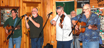The Itinerate Visitors delighted attendees with their rollicking bluegrass tunes. At right, on guitar, Paul Anderson, MCCF.
