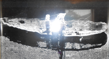 A 2002 side scan sonar image of the remains of the paddle wheel steamship Portland on the bottom about 14 miles east of Plymouth, MA. High wind and seas drove the ship off course, tore off the super structure, swamping and sinking the ship.