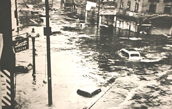 Winds from Hurricane Edna weren’t as strong as those of Hurricane Carol, but at 74 m.p.h., were sufficient to knock down huge trees and cause considerable property damage. Rain from Edna measured 7.5 inches. The ground was already saturated from Hurricane Carol and runoff caused huge problems, carving out roadways and railroad embankments.