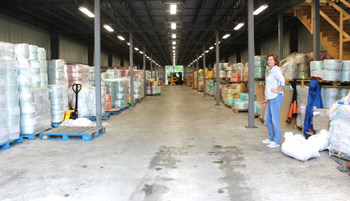 The new 16,000 square foot warehouse designed to handle rope and buoys. It holds 92 pallets of rope, far left, and thousands of buoys on the second floor. Fishermen’s Voice photo.