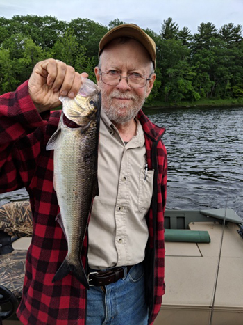 Tom Seymour with a shad typical of several caught in an afternoon on the Kennebec River. Shad have responded in a big way to the Clean Water Act of 1970 and dam removals in Maine. Tom Seymour photo.