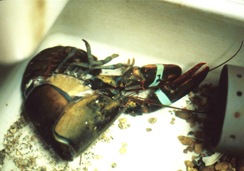 Hauling a trap aboard with 20 or 30 intact lobsters inside is a beautiful and awe-inspiring sight. But, while the lobsters usually don’t harm each other on the way up, once agitated, they start snapping at whatever they can grab, which is usually each other. A common consequence is loss of limbs.