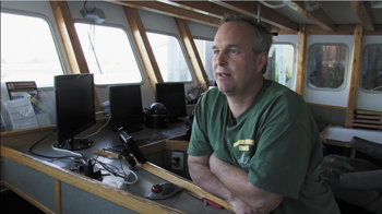 Kevin Norton aboard his FV Miss Emily. Regarding the NOAA fish stock surveys, “NOAA is fishing a ship, it’s very powerful. It’s got a lot of horsepower and biased by where it can go. They do half hour tows. It’s a snapshot. You can’t get a picture of how healthy the Gulf of Maine is by coming up a couple of times a year and doing a few tows.”