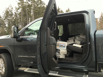 In 1998 I started writing the front page stories for Bill Crowe, the man who started Fishermen’s Voice. At the time, Maine fishermen were fighting against things like Catch Shares and mid-water trawlers. Since losing some of those battles and fighting new ones I have a new job: paper boy. But hey, I’m still on the staff and there are perks. Like delivering papers in a 2020 GMC Denali.