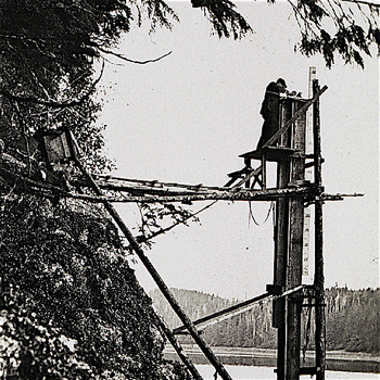 Checking the automatic tide gauge at Port Protection, Prince of Wales Island, Alaska, 1915. Photo from NOAA Photo Library.