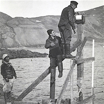 A Coast and Geodetic Survey officer (B. H. Rigg) checking a tide gauge on western Greenland as part of the MacMillan Arctic Expedition in 1926. Original photo from NOAA Photo Library.
