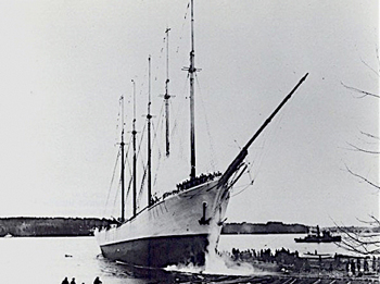 The USCG cutter Seminole. Powered by both sail and engine. It attempted to get close enough to pull the Deering off the rocks. Shallow water and stormy seas made it impossible.