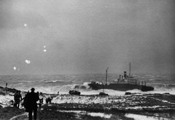 As one by one the men were pulled on their harrowing ride from the grounded vessel, the ship would roll as huge waves slammed into it, dunking the men on the breeches buoy and then, as the ship righted itself, hauling the men high in the air. In all, three men were driven underwater. One, Lorenz Connelly, suffered the most when the lines twisted and became stuck. Connelly was underwater for about 20 seconds. Upon reaching shore, Connelly was rushed to hospital, where he quickly recovered. One other survivor was hospitalized and he, too, enjoyed a swift recovery.
