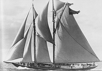 Full set of typical schooner sails. Varying combinations varied performance. (Cape Ann Historical Assoc.)