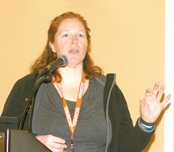 Kathleen Reardon, University of Maine. “We can’t answer these questions without fishermen reporting recaptures of tagged lobsters.” Laurie Schreiber photo.