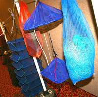 Gannets diving in a flurry on herring. Gannets can dive from 100' at up to 60 MPH. Their eyes are forward on their heads enough to give them binocular vision. An important adaptation from that height and speed on small fish. With the steep herring quota cuts in place, there will be no flurry of fishing for the herring fleet. ©Joel Woods photo.