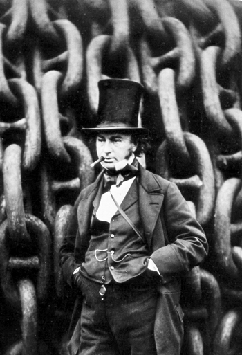 Isambard Kingdom Brunel (1806-59), engineer and designer of the first propeller-driven, iron-hulled steamship, the Great Britain, launched in 1843. The iron ship compounded the problem of shipboard metal throwing off compasses. Brunel was known for his big projects – ships, bridges, etc. It is not a coincidence that this photo finds him with giant chain links for a background. On it’s fifth transatlantic trip, the Great Britain left Liverpool for New York. Steaming along on a dark night it slammed into the Irish coast, a victim of its compass. Robert Howlett photo.