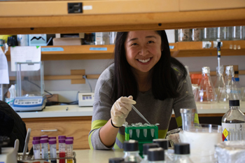 Emma Taccardi, former SEANET student, conducts sea lice research in professor Ian Bricknell’s lab.